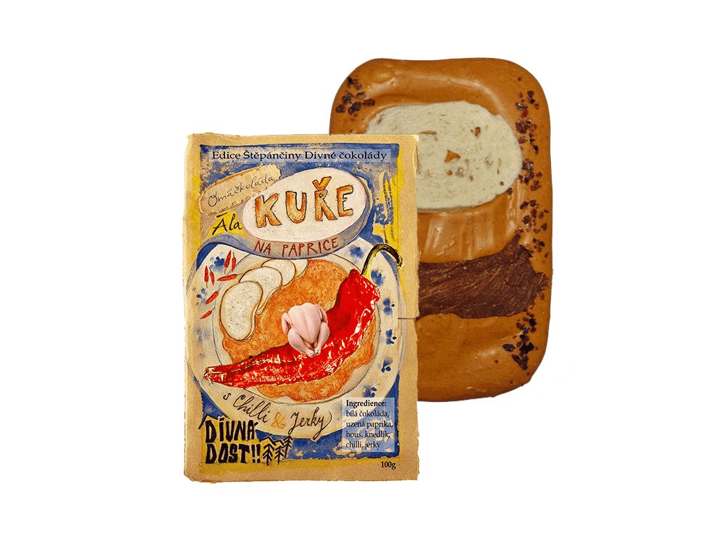 První omáčkoláda se skutečným vepřovým masem na česneku a karlovarským knedlíkem, inspirovaná tradiční českou kuchyní. Vyrobeno ve spolupráci s lokální firmou z Moravského krasu „DOBRÝ DOST!!“, která vyrábí kvalitní, různě ochucené jerky.
